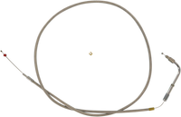 Stainless steel cables with clear coating offer that custom look without the fear of damaging areas that the cables come in contact with, Available with nylon-lined, PVC-coated casings in standard diameters, Made in the U.S.A., Length of throttle and idle cables measures outer housing only, excluding the elbows and/or adjusters.