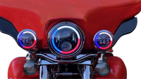ProGLOW* LED Halo Headlamp features projection style high and low beam with advanced optical D lenses for a smooth, bright white beam pattern, Headlamp automatically keeps low beam LEDs illuminated when high beam is activated, no additional harnesses required, Built in ProGLOW* color changing Halo plugs into ProGLOW* Bluetooth Controller (sold separately), The innovative app connects to IOS or Android providing Bluetooth control of your lights at your fingertips, 6000k color temperature, DOT/SAE compliant