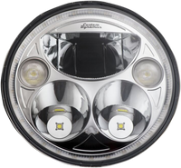 Premium 7" Round LED headlamp designed for custom installation on models with factory 7" headlight, Complex reflector design features three low beam LEDs and two high beam LEDs with a combination of projector and reflector type LEDs and built in halo ring, LED combination provides superior low and high beam outputs, Durable polycarbonate lens with H4 connector and mounting hardware included; no additional trim ring needed, 4210 raw lumens/2947 effective lumens; 5800K color temp , 1.1 amp low current draw, 1.5 amp high current draw, 0.2 amp halo ring current draw