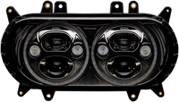 Headlight - Black - FLTR Built in 6000K DRL wing and halo, Combines reflector and projector type LEDs for optimal performance, Built in auxiliary turn signals, Polycarbonate lens, Low beam: 31.2 watts/high beam: 28.8 watts