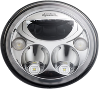 Complex reflector design features three low-beam LEDs and two high-beam LEDs; optional hi/low adapter allows all to be lit at once, Combination of reflector and projector type LEDs results in superior light output, Integrated LED halo, Polycarbonate lens for light weight, LEDs reduce high- and low-beam current draw, 5800K light color temperature, H4 connectors
