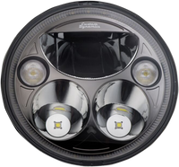 Complex reflector design features three low-beam LEDs and two high-beam LEDs; optional hi/low adapter allows all to be lit at once, Combination of reflector and projector type LEDs results in superior light output, Integrated LED halo, Polycarbonate lens for light weight, LEDs reduce high- and low-beam current draw, 5800K light color temperature, H4 connectors