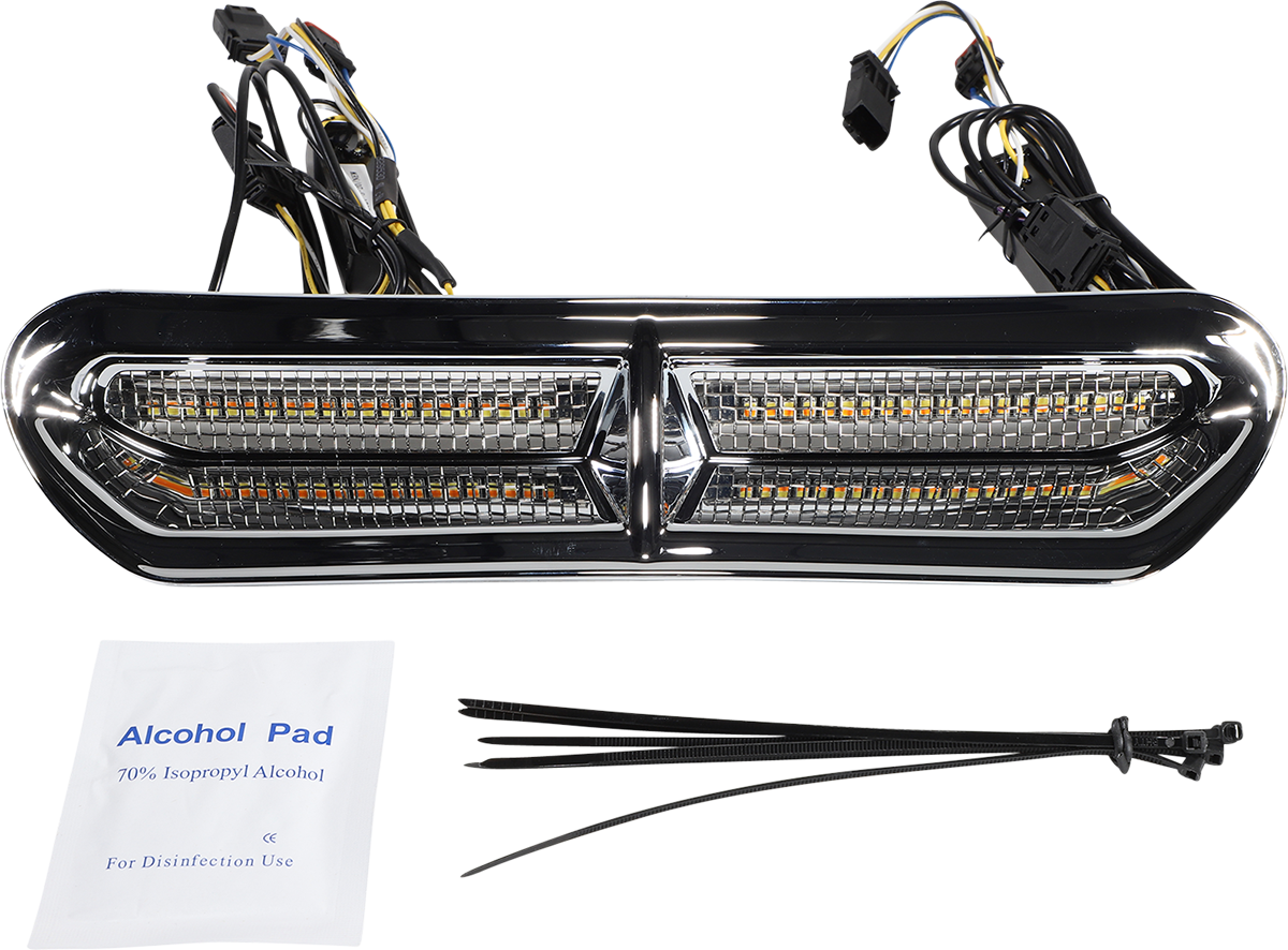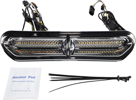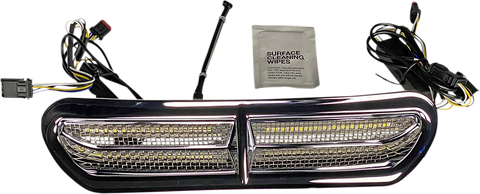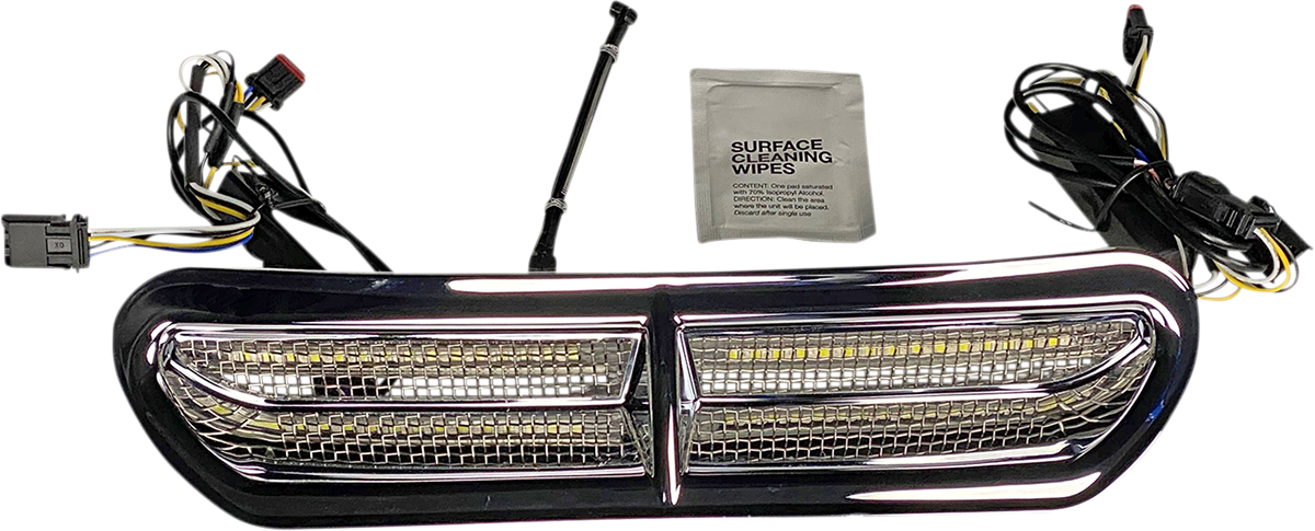 Dual color Genesis? 4 LEDs are packed behind each side of the mesh for visibility like never before, Allows stock fairing vent to open and close, Features white running light and full contrast amber turn signal, Comes equipped with plug and play connectors for a simple installation