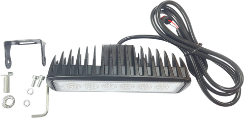6 bright white, high power LEDs produce a super bright beam pattern to be used in addition to the headlamp, Mounting bracket included for securing to the triple tree using the factory headlamp mounting bolt, Universal wiring adapter part# 2120-1056 (sold separately) required for plug and play installation