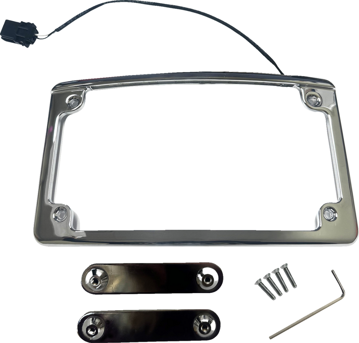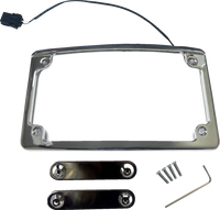 Fits standard 4* x 7* motorcycle license plates, Equipped with plug and play connector for simple hook up for tag illumination, Mounting hardware included, Requires license plate mount part # 2030-1959 or 2030-1960 (sold separately).