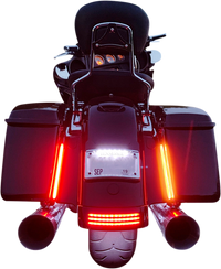 Plasma Rods* can mount about anywhere but they work great between your saddlebags & fender/filler panel, Offers as dim red running light with high intensity red brake and full contrast amber turn signal, With their smoke lens, Plasma Rods* are almost invisible when off, Units are equipped with a plug and play connector and in-line quick disconnect for a simple install when used with one of the Plasma Rods* Wiring Adapters (sold separately)