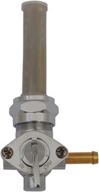 90 Degree Petcock - Chrome - 22mm Includes filter screen, three-position control and high fuel flow, 22mm thread fittings