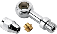 Fittings also work great for custom hydraulic clutch applications, Drag Specialties universal brake line fittings, Made in the U.S.A., For off-road and show use only; not DOT compliant, 04-16 XL models use metric 10mm x 1.25" and 12mm x 1.50" banjo bolts, washers and fittings. All Big Twin (except 08-16 Dressers) and pre-04 XL models use standard 3/8" and 7/16" banjo bolts, washers and fittings. Fittings and washers listed as 3/8"/10mm can be used in either application.