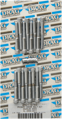 Socket-head bolt sets to meet virtually any custom need, Complete motor sets for 07 and later Big Twin include bolts for primary, cam, cam sensor, derby, rocker box, transmission top, transmission side, lifter block and clutch covers, Complete motor sets for 87-94 Big Twin include bolts for cam, primary, point, clutch, inspection and chain covers, lifter base, inner primary, top front and rear motor mounts, timing plug and header mount screws, Complete motor sets for 04 and later XL include bolts for primary, cam, derby, lifter block, points cover, rocker box and engine case, Complete motor sets for 86-03 XL include bolts for cam, primary, generator, sprocket, rocker box, top motor mount, lifter base, point or magneto cover, Made in the U.S.A.
