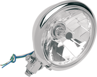 Bottom Mount Springer Headlight - 5-3/4" - Chrome Smooth chrome housing with diamond-style clear lens and reflector optics, Matching finish mounting block, DOT compliant.
