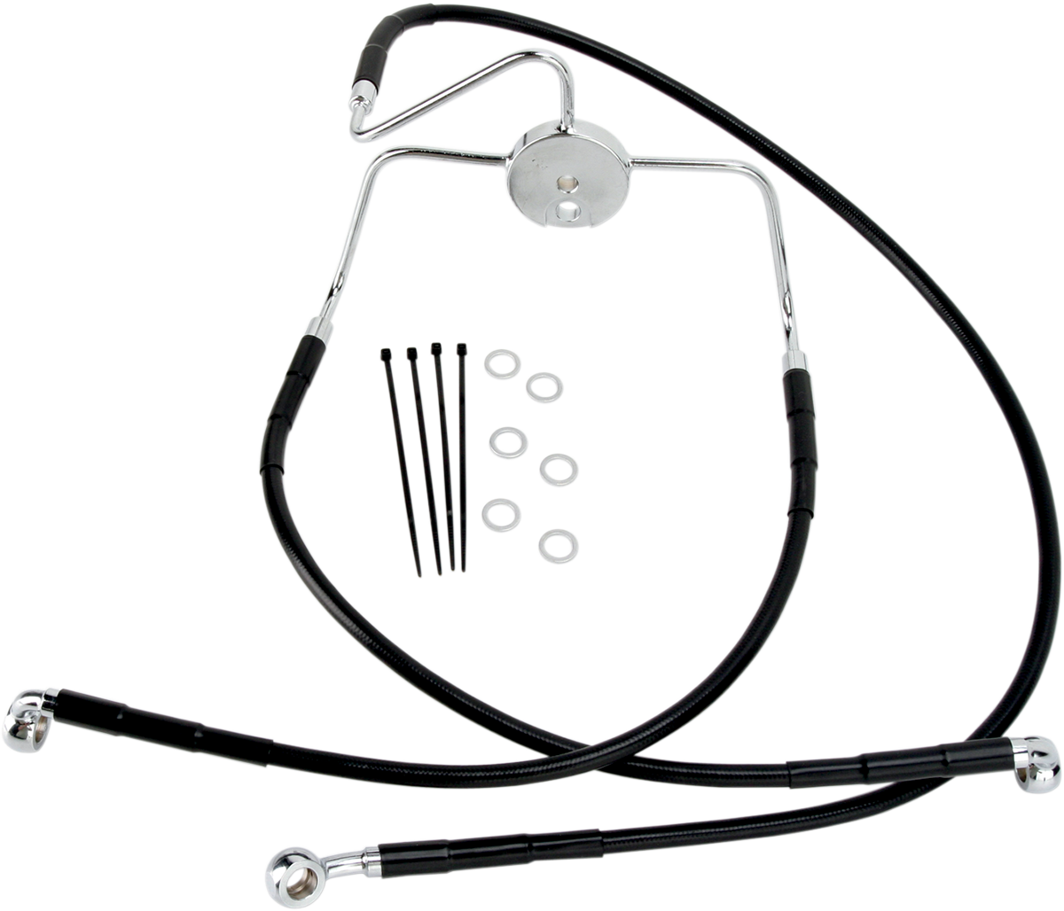 Brake Line - Front - Black - +6" Features black vinyl-coated braided extended lines with chrome steel fittings, Made in the U.S.A., All measurements are approximate.