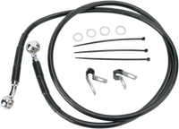 Brake Line - Front - Black - +8" - '99-'07 FXST Features black vinyl-coated braided extended lines with chrome steel fittings, Made in the U.S.A., All measurements are approximate.