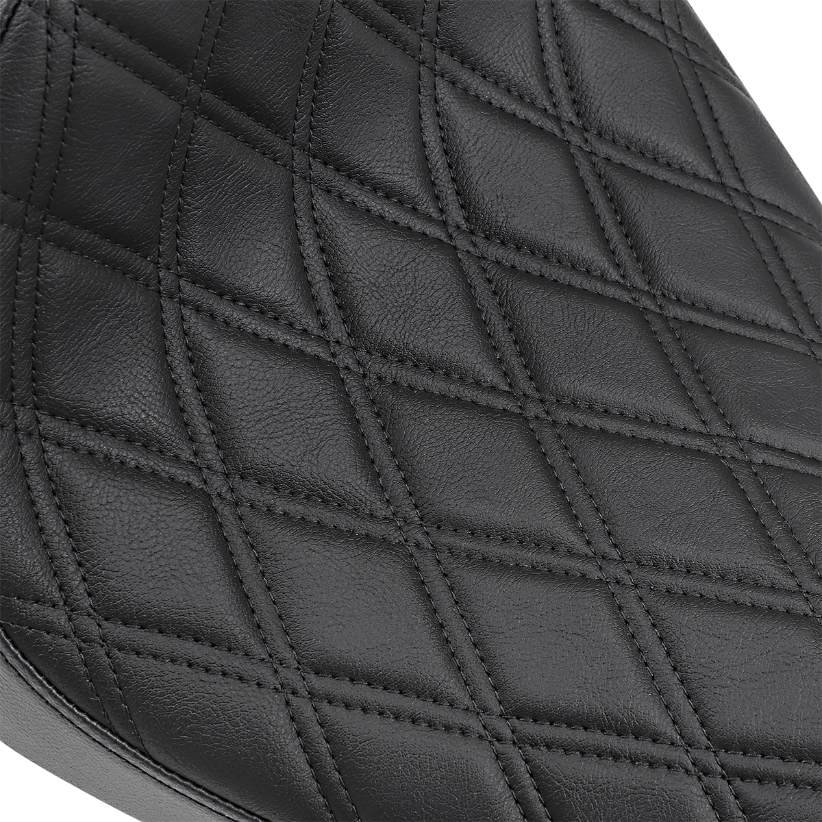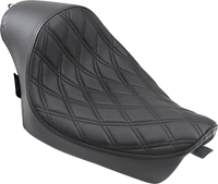 Caf racer style seat with molded flexible polyurethane foam for maximum comfort and improved styling, Automotive-grade vinyl covers, 3/16 ABS thermoformed seat base with fully carpeted bottom and rubber bumpers to protect paint, Not compatible with rear solos, Seat mounts to the center hole in the fender, Includes mounting hardware, Made in U.S.A., Seats will fit with 2.1, 3.3, and 4.5 gallon tanks. Models with 2.1 and 3.3 tanks will have a gap between seat and tank., Not for '04-'09 XL models due to the location of the ECM.