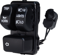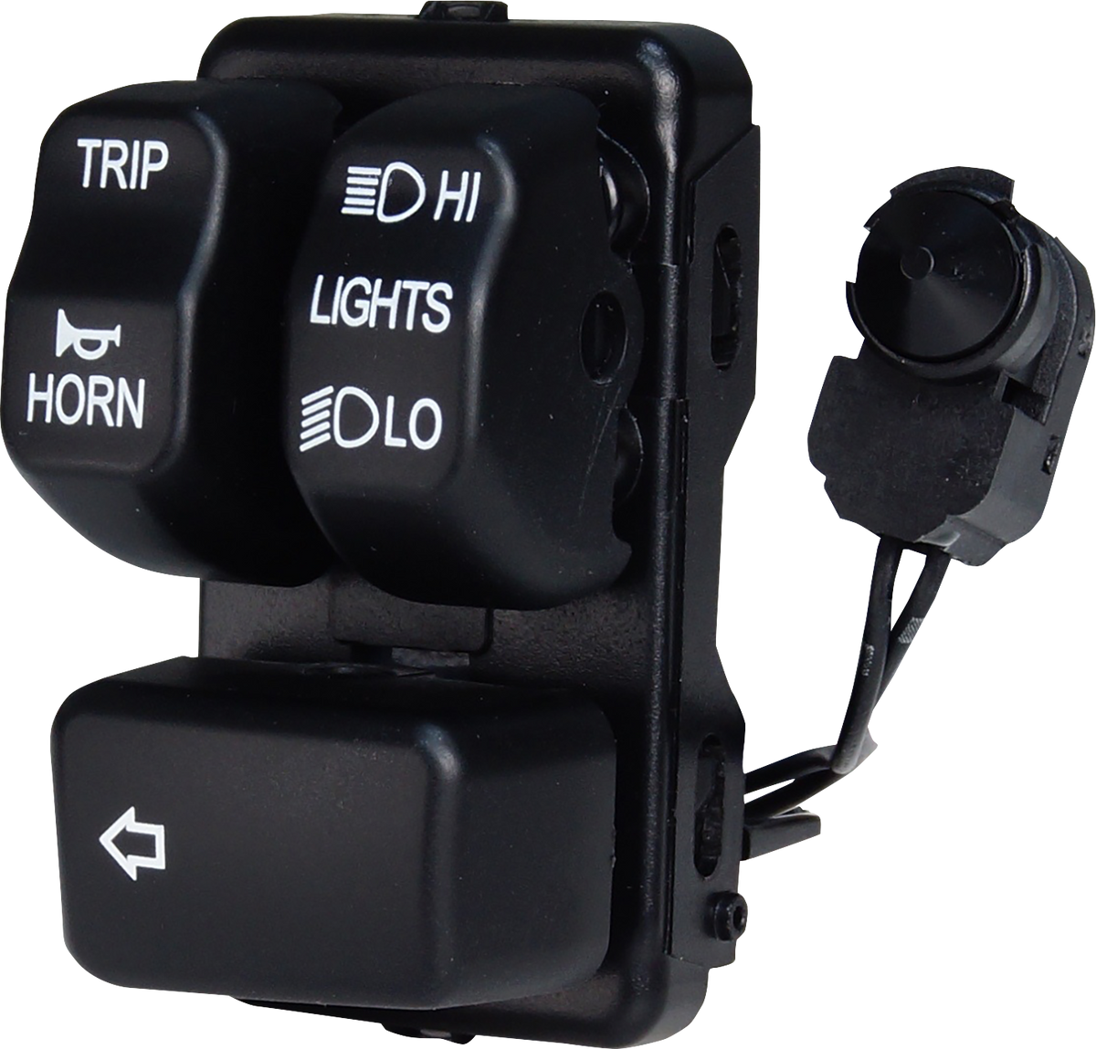 Control Module - Left - Black Includes appropriate switch, 48" long wire harness and turn signal reserve wire, Durable IP66-rated module and connector, Not for use with Softail models that feature cruise control