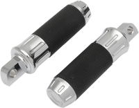 Custom Footpegs - Chrome CNC precision-made from billet 6061 T-6 aluminum, Feature custom-tailored rubber grips for better performance and design, Footpegs have male mounts to fit most Harley applications