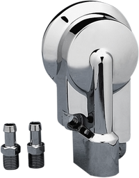 Custom Oil Filter Mount Features 1/4" NPT fittings and may be used with 3/8" stainless steel or rubber lines, Accepts all Evolution style oil filters, Designed to replace the OEM cast mount