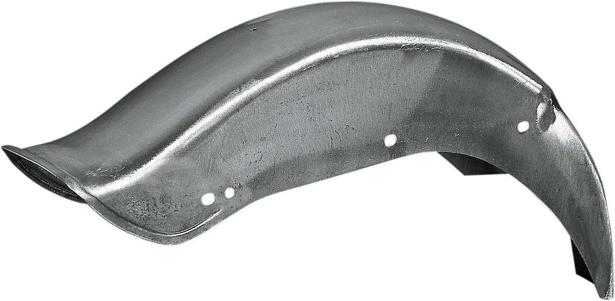 Custom Quickbob Rear Fender Wide Glide-style with a raw steel finish, Accepts stock fender struts and hardware, Optional chrome license/ taillight bracket; sold separately