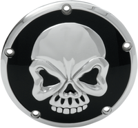 Derby Cover - Chrome/Black - Skull Made from cast aluminum, Chrome-plated with a high-gloss black background finish