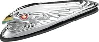 Eagle Head with Lights - Red Eyes - Small - Chrome Die-cast eagle fender ornament, Small measures approximately 1-1/2 tall; large is approximately 2-1/2 tall, Fit most front fenders; includes gasket and mounting hardware