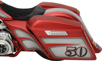 Manufactured using the same material as OEM bags and lids, Stronger, easier to paint and hold their shape better than any competitor*s product, Saddlebags feature a full 4" extension across the entire bottom of the saddlebag, Extensions give bags added space, as well as a true custom look, Dual exhaust cut-outs, Direct bolt-on, accept all OEM or aftermarket lids, hardware, latches, tethers, etc., Great for custom application or damage replacement, Individually boxed, ready for paint with minimal prep