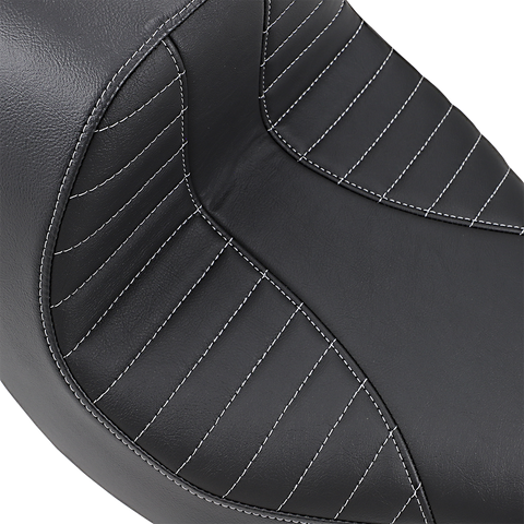EZ mount system for user-friendly mounting; no tools needed for seat installation or removal, Seat covers the two seat fender studs for that low, clean look, Molded polyurethane foam interior for maximum comfort, 3/16" ABS thermoformed seat base for a perfect fit, Lowers rider up to 1" from stock seat depending on model, Include all mounting hardware, Made in the U.S.A.