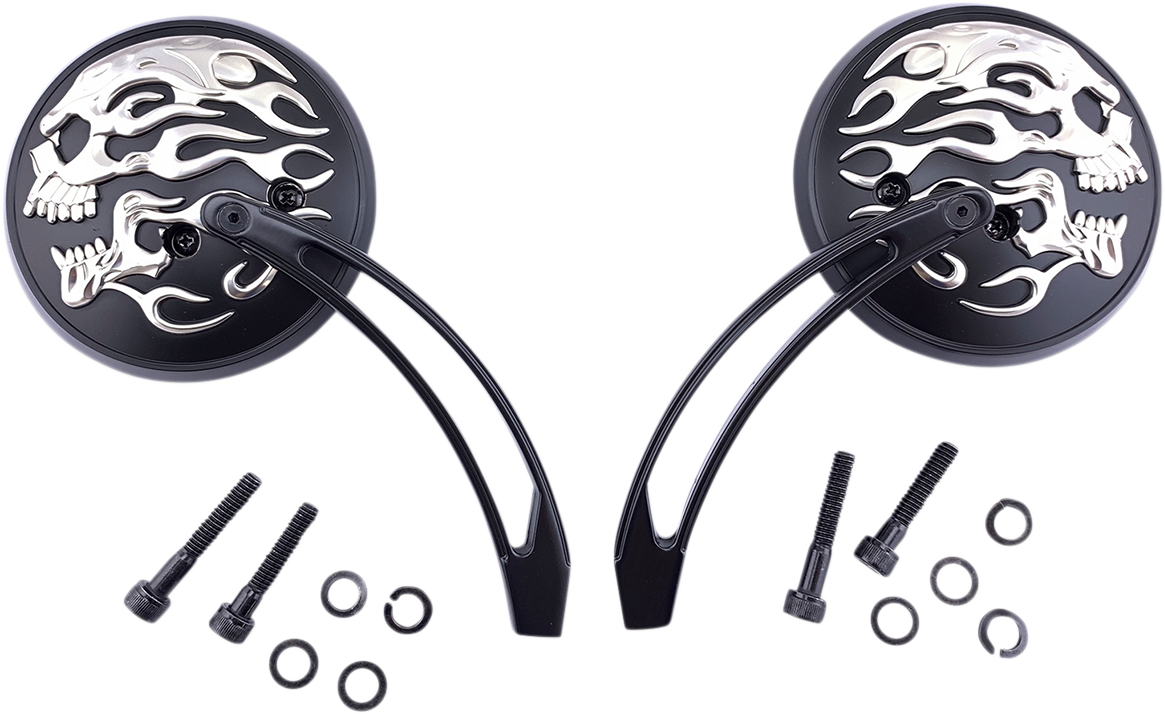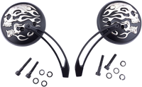DRAG SPECIALTIES Flame Skull Mirror - Matte Black - 4-1/2" M60-6615MB