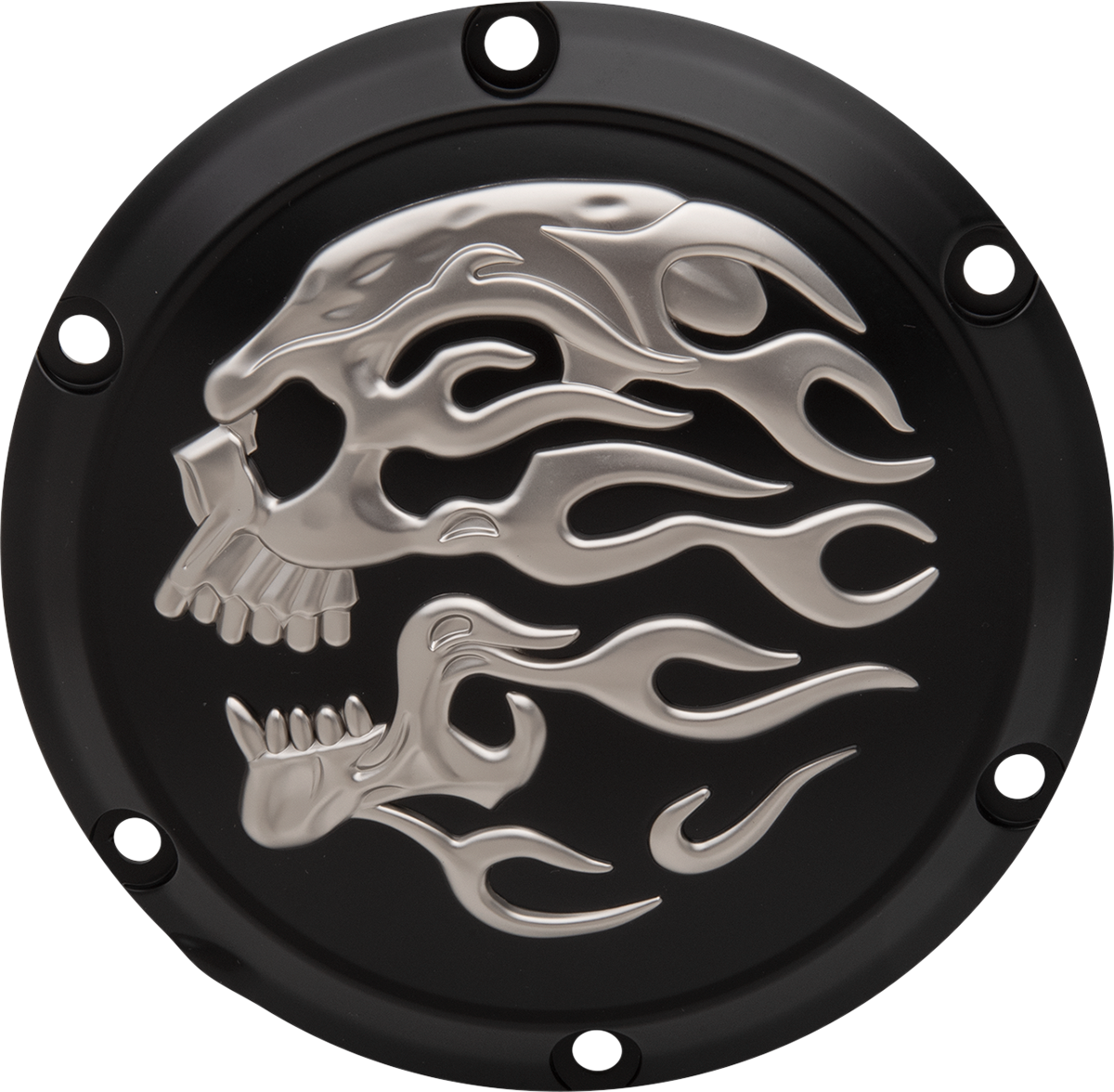 Flaming Skull Derby Cover - Black Die-cast aluminum construction, Designed to match flaming skull points covers