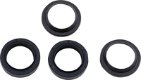 Seal profile is engineered to create equal pressure in each seal lip; equalized seal pressure creates less drag and longer seal life, MAX-LIFE has a coefficient of friction up to three times less than the OEM seal material, Triple-lip seal design, Directional ribs allow seal to be installed easily, Kits include fork seals and dust wipers