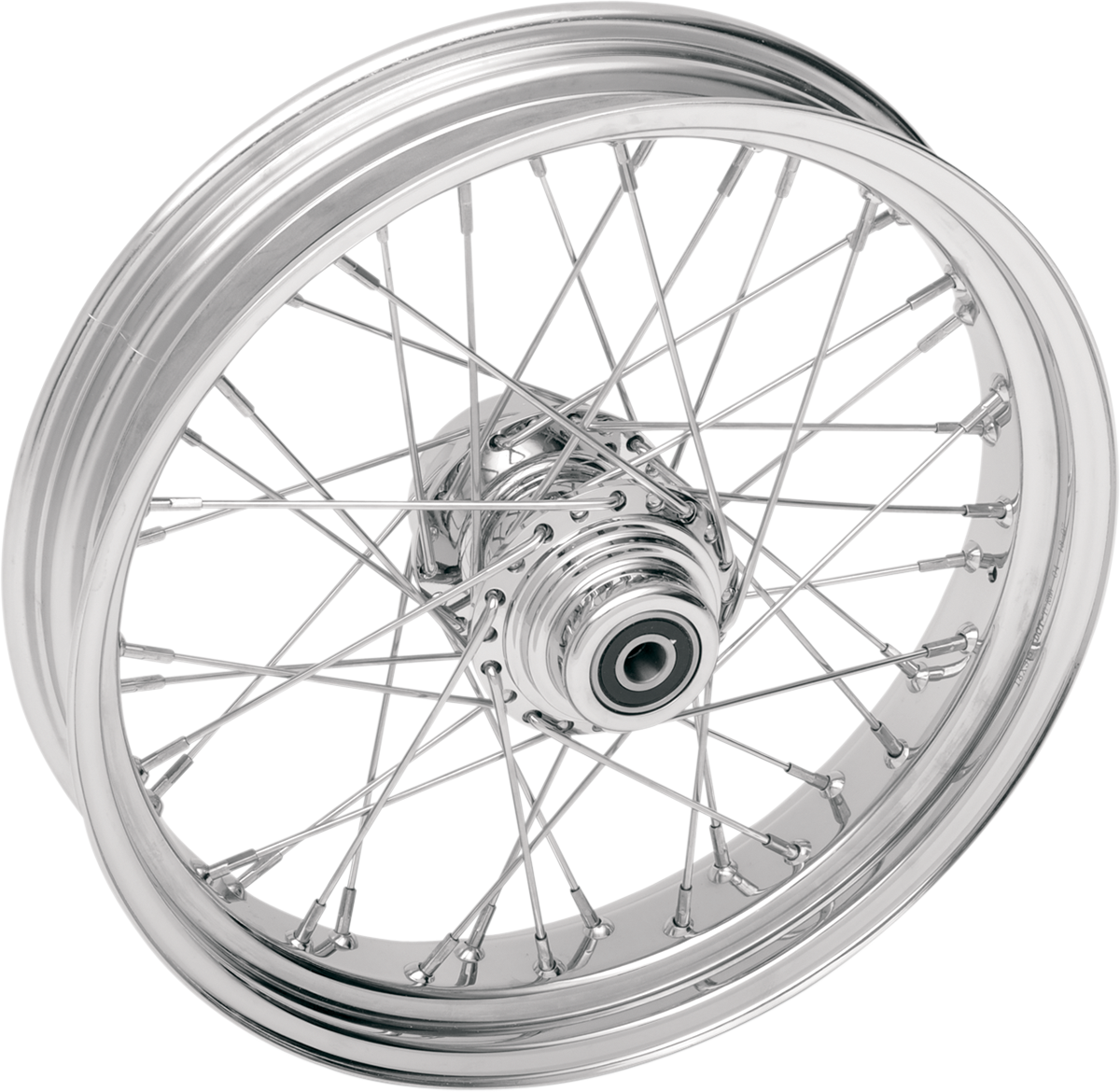 Chrome billet aluminum hubs with polished stainless steel spokes and polished stainless steel nipples, Wheels come completely assembled and are trued to less than .005" runout, Made in the U.S.A. by RideWright Wheels, Classic, tube-type spoke design, Chrome-plated steel rims, DOT approved