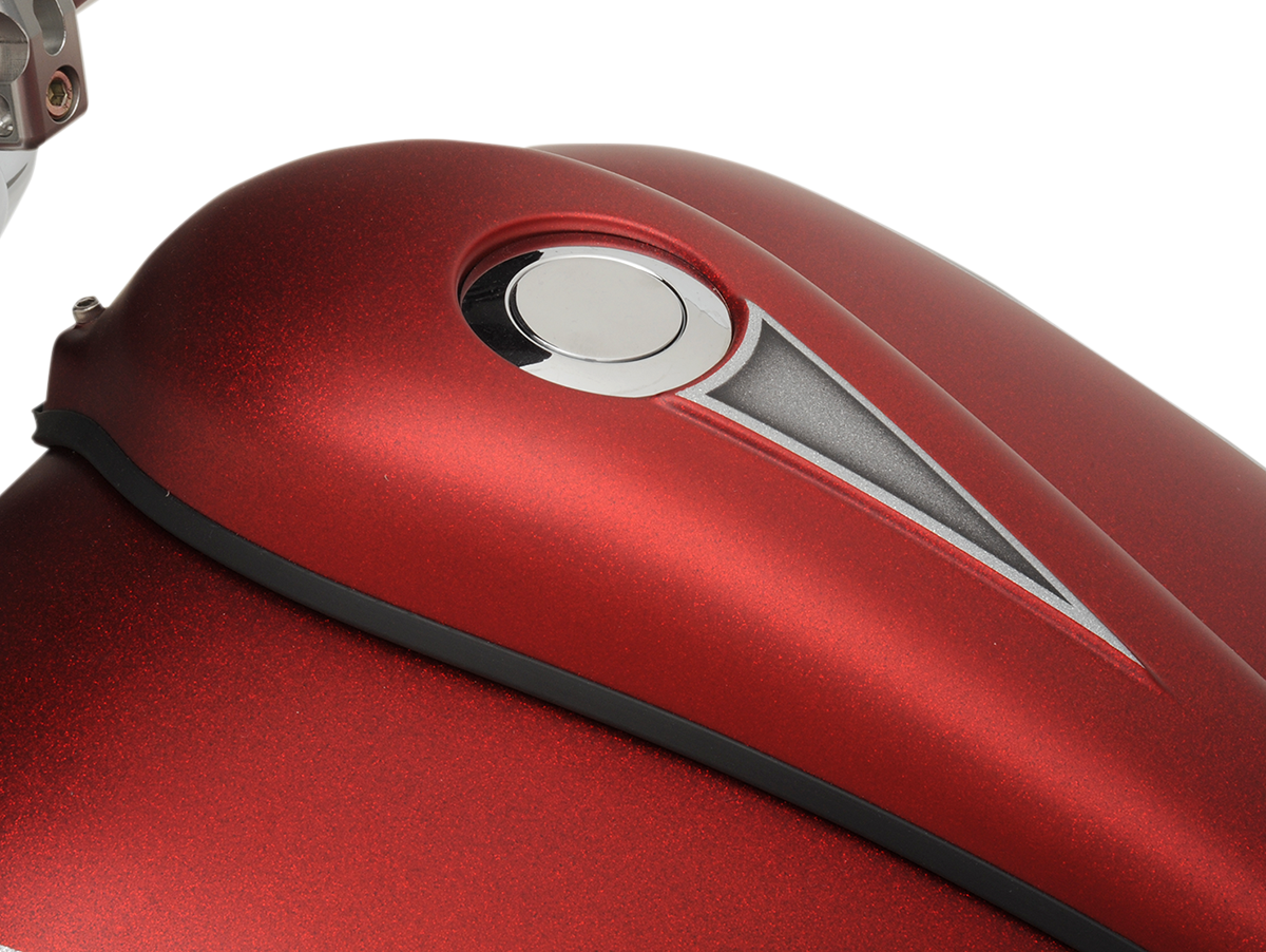 Gas Cap - Vented Pop-Up - Chrome Billet aluminum construction, Fit is nearly flush when closed; opens easily with just a quarter-turn of the center of cap, Use OEM-style gasket for a positive seal