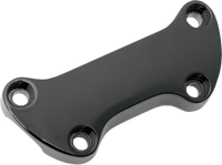 Handlebar Clamp - Smooth - Black Die-cast clamp for most '74-'17 models with 3-1/2" on-center risers and offset mounting holes, Fits 1" OD diameter bars