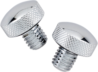 Knurled Seat Bolt - Chrome - FLST '84-'07 Fits '84-'07 FXST/FLST models having a seat that bolts to the side of the frame, Includes two chrome 1/2"-13 x 5/8" knurled head finger bolts with O-rings