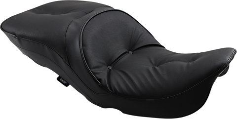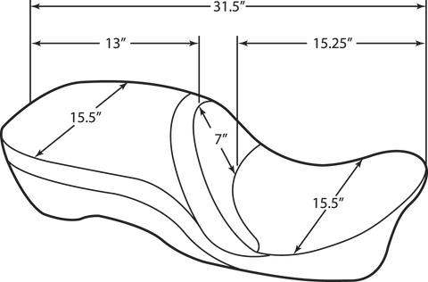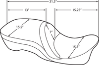 Solar-reflective leather in the seating area and automotive-grade vinyl on the sides; patented process reduces surface temperature by as much as 25? F for a cooler seat, higher durability and longer life over conventional leather or vinyl, The driver area is cut narrow in the front and is approximately 1" lower than the stock seat, Large touring seat with new styling and improved shape for added comfort, Also work with Harley Davidson? OEM frame mounted mechanism and backrest pad, Molded flexible urethane foam interior for maximum comfort, Carpeted bottom with rubber bumpers to protect paint, 3/16" ABS thermoformed base for a perfect fit, Accept driver backrest (sold separately), Include all mounting hardware, Made in the U.S.A.