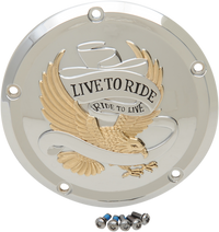 Live to Ride Derby Cover - 5-Hole - Gold Feature a detailed plated eagle and banner, Script is recessed