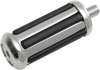 Another unique design from Drag and Arlen Ness, Protective rubber rails run completely around diameter for great looks no matter how pegs rotate or pivot, Each is precisely die-cast, chrome-plated aluminum, End cap is super-clean and uses a grade 8 countersunk flat-head socket screw, Very tight tolerances ensure a great-quality, super strong footpeg assembly, Carbon-steel pivot ends are stronger than other die-cast pivots, Peg diameter is 1-1/2" (between a standard large-size driver and the smaller passenger-style pegs); length is 4" without pivot end, Shifter peg matches footpegs