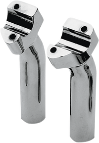 Risers are machined from billet aluminum, Fit any handlebars that have a 1" diameter in the clamping area, and have 1-1/4" riser diameter to compliment the style of 1-1/4" diameter handlebars, Accepts Buffalo handlebar clamps or OEM-style handlebar clamps with offset mounting holes, Pullback risers have 1" of pullback, All risers use 1/2"-13 riser bolts; available separately, Made in the U.S.A.