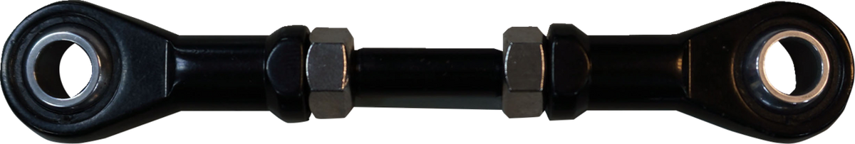 Steel construction, Available in chrome finish or black, Features a custom round heim joint end with 5/16" hole and/or ball joint ends with 5/16"-24 stud, Rod lengths are measured from the center of the hole to the center of the stud with the adjusters collapsed, Sold each
