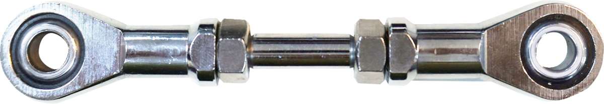 Steel construction, Available in chrome finish or black, Features a custom round heim joint end with 5/16" hole and/or ball joint ends with 5/16"-24 stud, Rod lengths are measured from the center of the hole to the center of the stud with the adjusters collapsed, Sold each