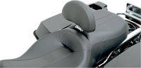 Pad assembly options include a solar-reflective leather styles that match both lower profile and tall seats; solar-reflective reduces surface temperature by as much as 25?F (EU: -3,89 ?C) for a cooler contact, higher durability and longer life over conventional leather or vinyl, Pad assembly includes high-quality polished and chrome-plated 7.25" (EU: 18,42 cm) short detent bar with a design that provides 2" (EU: 5,08 cm) of fore and aft adjustment, Pad assembly does not include mounting hardware; hardware is included with receiver mechanism (PN #0822-0163), Short bar is for Street Glide, Road King and Road Glide-style low-profile seats., Specially designed to work with models with OEM slotted seat, All pads fold forward for ease of getting on and off bike, Made in the U.S.A.