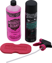 Kit includes the following items:, MOTORCYCLE CLEANER, Safe on all parts and surfaces including carbon fiber, Will not harm seals, cables, brake pads or rotors, Safe on anodized metal, Alkaline-based and free from CFCs, solvents or acids, Nano Tech Formula cleans on a molecular level, Biodegradable, 1-liter spray bottle, MOTORCYCLE PROTECTANT, High-performance formula leaves dry, non-sticky protective film, For use after washing to drive out excess water, Prevent dirt adhesion, Makes an ideal winter protectant, Quick and easy to use, 500ml spray can, MICROCELL SPONGE, Bike-friendly size, Expands after opening, Ergonomic design