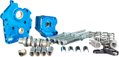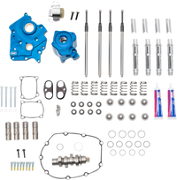 All parts in each kit are matched to ensure superior quality, fit, finish and performance, Oil pump and cam plate are precision-machined from billet aluminum with a blue anodized finish, Passage plugs removable for servicing, Independent scavenge sections for the flywheel cavity and cam chest, Debris screens in both scavenge pickups, Increased oil flow capacity on both the feed and scavenge sides, Adjustable Pressure Relief Valve is adjustable with unit installed in engine, Magnet in cam chest to help to stop debris from entering oil pump, S&S Quickee Pushrods with finished pushrod tubes, S&S premium tappets, Billet aluminum tappet cuffs have a hard-anodized black coating and are stronger than stock to eliminate distortion, Improved tappet stability in high-lift and high-rpm situations, Includes all gaskets, bearings, and hardware required for a complete installation, Made in the USA