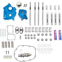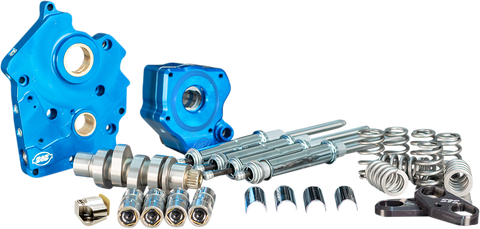 All parts in each kit are matched to ensure superior quality, fit, finish and performance, Oil pump and cam plate are precision-machined from billet aluminum with a blue anodized finish, Passage plugs removable for servicing, Independent scavenge sections for the flywheel cavity and cam chest, Debris screens in both scavenge pickups, Increased oil flow capacity on both the feed and scavenge sides, Adjustable Pressure Relief Valve is adjustable with unit installed in engine, Magnet in cam chest to help to stop debris from entering oil pump, S&S Quickee Pushrods with finished pushrod tubes, S&S premium tappets, Billet aluminum tappet cuffs have a hard-anodized black coating and are stronger than stock to eliminate distortion, Improved tappet stability in high-lift and high-rpm situations, Includes all gaskets, bearings, and hardware required for a complete installation, Made in the USA