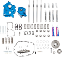 All parts in each kit are matched to ensure superior quality, fit, finish and performance, Oil pump and cam plate are precision-machined from billet aluminum with a blue anodized finish, Passage plugs removable for servicing, Independent scavenge sections for the flywheel cavity and cam chest, Debris screens in both scavenge pickups, Increased oil flow capacity on both the feed and scavenge sides, Adjustable Pressure Relief Valve is adjustable with unit installed in engine, Magnet in cam chest to help to stop debris from entering oil pump, S&S Quickee Pushrods with finished pushrod tubes, S&S premium tappets, Billet aluminum tappet cuffs have a hard-anodized black coating and are stronger than stock to eliminate distortion, Improved tappet stability in high-lift and high-rpm situations, Provides improved cam timing accuracy and eliminates the stock cam chain tensioner, Includes outer drive gears, all gaskets, bearings, and hardware required for a complete installation, Made in the USA