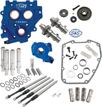 Upgrade to S&S bolt-in performance camshafts, Improves engine performance - higher lift and optimized cam timing, S&S Quickee pushrods - easy installation, without removing rocker covers, Replaces stock oil pump, cam support plate, cams, chain tensioners, and tappets with all-new, premium U.S. made S&S components, Gear-drive kit offers peace of mind - no more worries about cam chain failure, Chain-drive kit includes S&S Hydraulic Cam Chain Tensioners for improved valve timing and chain life, Made in the U.S.A.