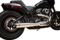 Classic 2:1 styling, Fits floorboard and forward controls and fits mid mounts with S&S brake pedal kit (part #560-0259A / 1861-1493 for $162.95), Saddlebag support compatible! Works with OEM and similar size saddlebags (like Heritage? or Sport Glide? models), Stainless steel stepped header construction, Passenger peg bracket included (Fat Boy, FXDR & Breakout version. All others use OE Heritage location), Removable dB reducer included (Race only version), Made in the USA!