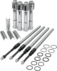 Kit includes four S&S Quickee pushrods, four pushrod covers and O-rings, Pushrods are manufactured from chromoly steel for superior strength, Pushrod covers have a chrome-plated finish, Kit does not require rocker box removal, Made in the U.S.A.