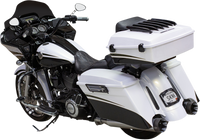 Shadow Muffler - Chrome Fills left side cutout in extended bags when running a Sidewinder 2:1, Matching end cap for left side is a mirror image of right side of Sidewinder 2:1, 4.5" design, All hardware included, Not for Trike applications