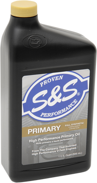 Synthetic Primary Oil - 1 U.S. quart Advanced additives extend chain life, Full-synthetic formula resists shear and extends life, For use in Big Twin primaries, Available in 1-quart bottles, 12 per case, Made in the U.S.A.