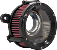 Assault Charge High-Flow Air Cleaner - Gloss Black Features a billet aluminum backing plate with hidden integrated breather system and a plexiglass outer cover, Snap-in velocity stack for improved airflow, Dyno developed and tested, Made in the USA