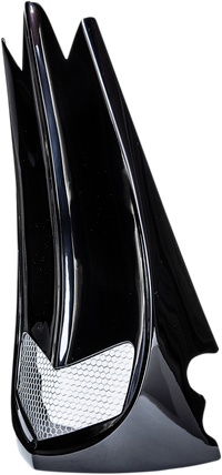 Hand-laid fiberglass construction with a gel coat finish, Help fill the gap between the wheel and the front of the frame to add a custom finishing touch, Fits with factory stock oil cooler, Includes all necessary hardware and grille insert, 18" H x 10" W x 10" D, For stock rake bikes only, Made in the U.S.A.